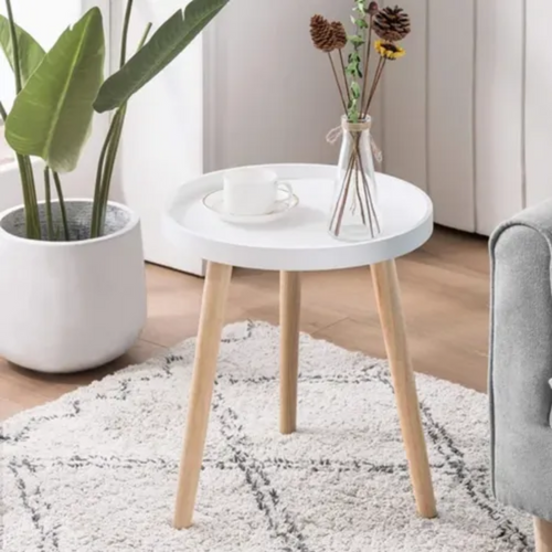 MESA AUXILIAR REDONDA – 50 cm | Polipropileno Ecológico | Patas Inclinadas | Fácil Limpieza