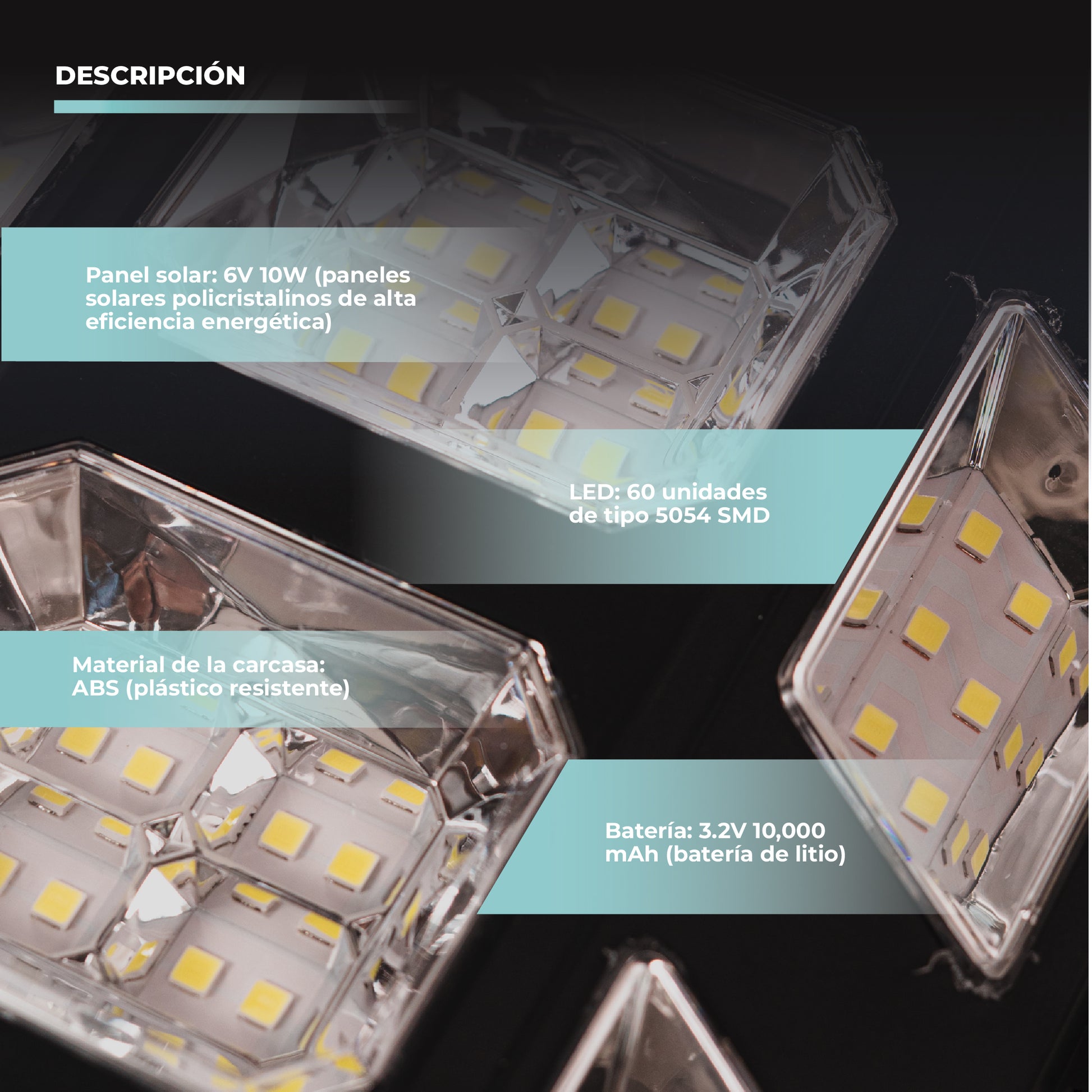 Fabricada con material ABS resistente a la intemperie, esta lámpara soporta lluvia, polvo y sol, asegurando una larga vida útil. Además, incluye control remoto inalámbrico, permitiéndote ajustar el brillo, el modo de encendido y los tiempos de iluminación de forma práctica y segura.